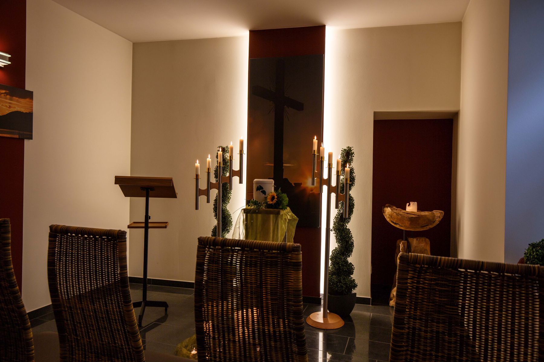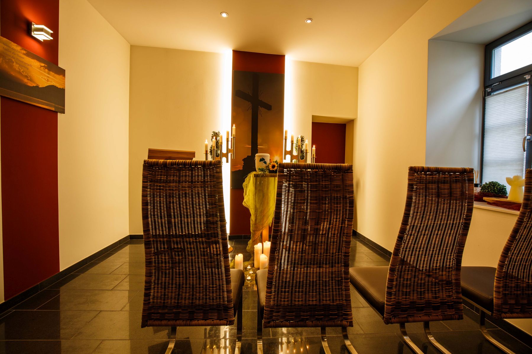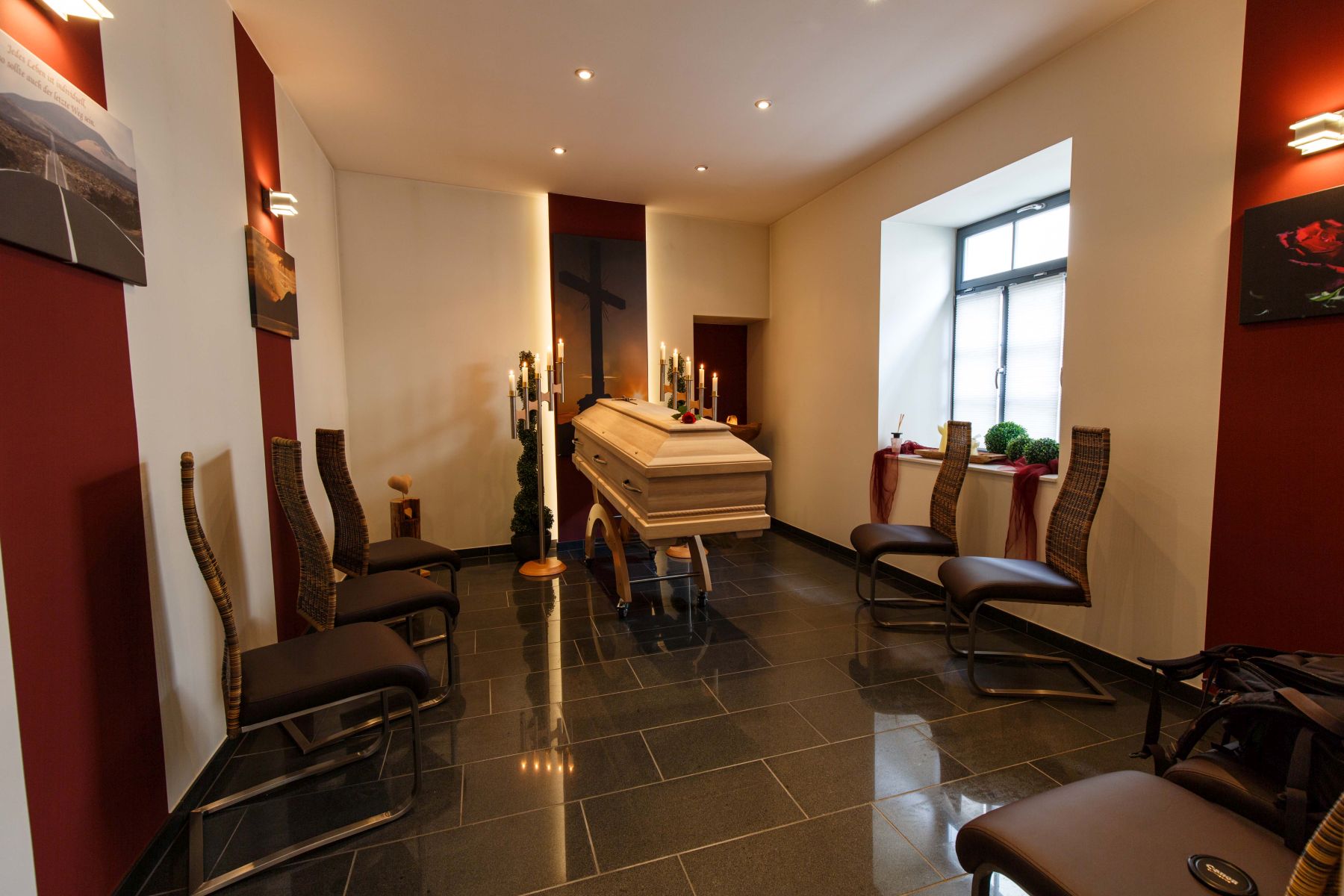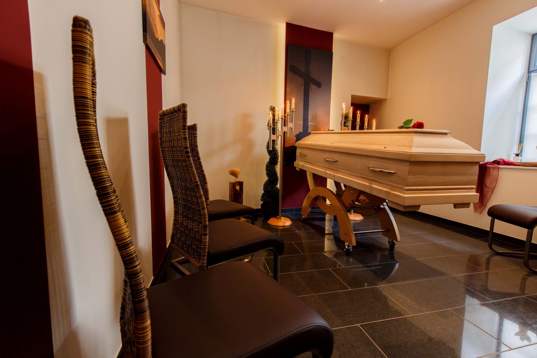 Auch ist es möglich eine Trauerfeier, ob mit Sarg oder Urne, in unseren Räumlichkeiten durchzuführen.
